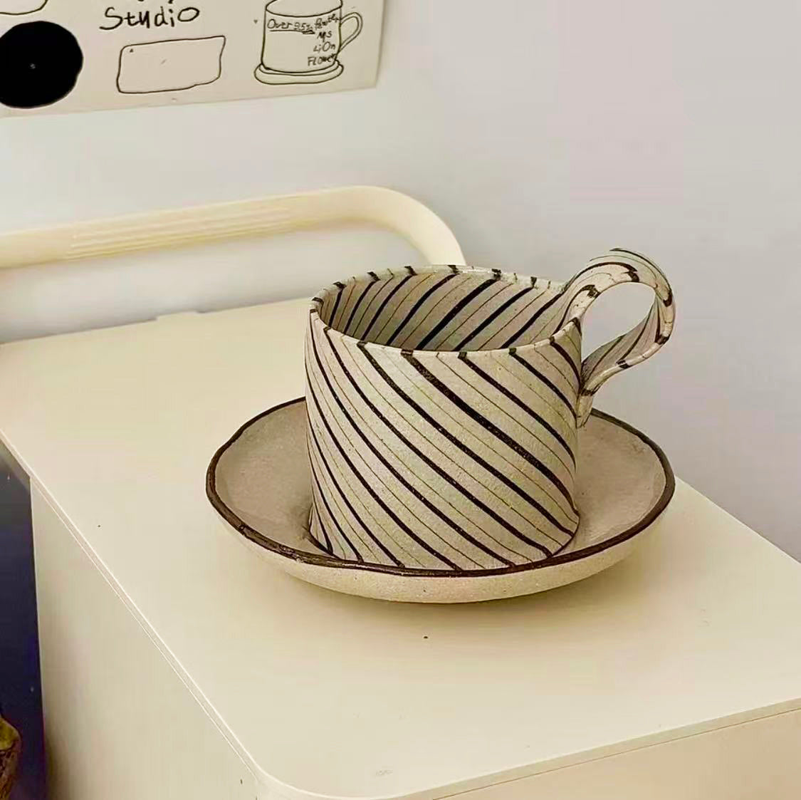 Kneaded clay espresso cup and saucer by reknowned Japanese potter Yusuke Aida of Oshino kiln.