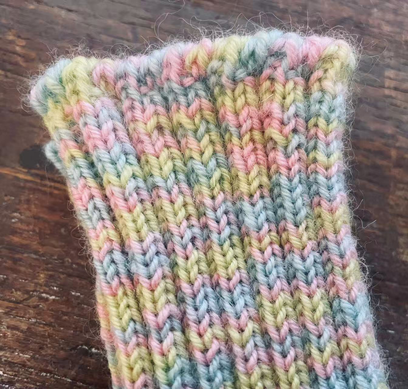 One-of-a-kind wool socks. The pair of socks is entirely unique and hand knitted from a mix of available dead-stock wool yarns.