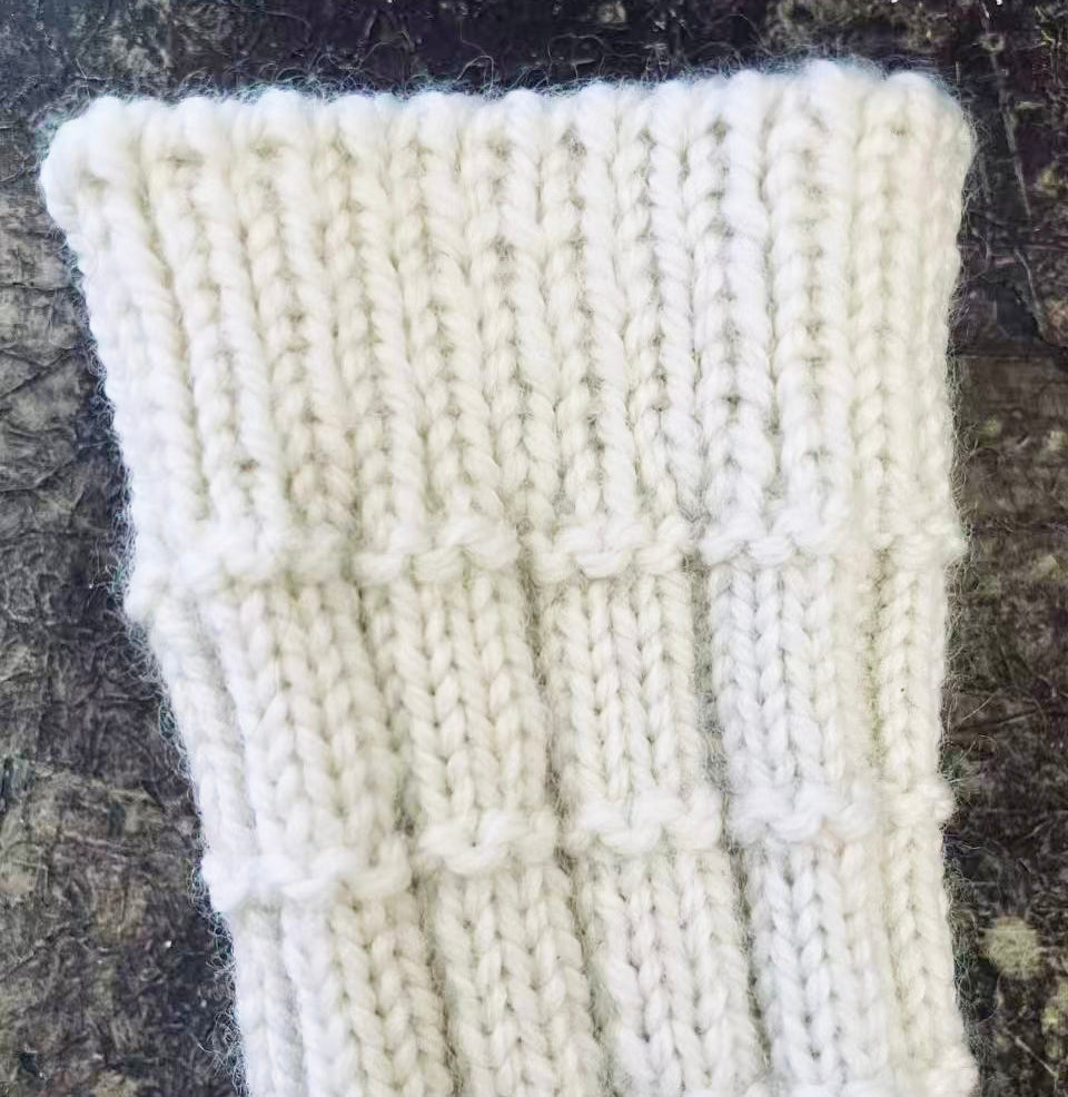 One-of-a-kind wool socks. The pair of socks is entirely unique and hand knitted from a mix of available dead-stock wool yarns.