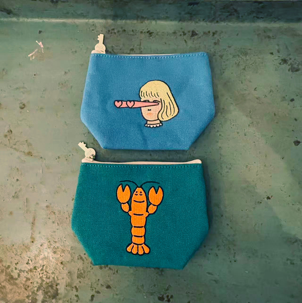 Korea 1537 Peacock Green Lobster Canvas Boat Pouch/ Makeup Bag.